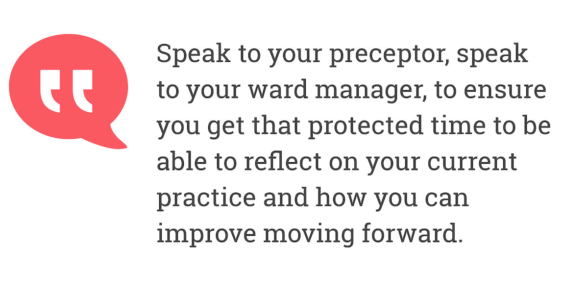 Speak to your preceptor, speak to your ward manager, to ensure you get that protected time to be able to reflect on your current practice and how you can improve moving forward.