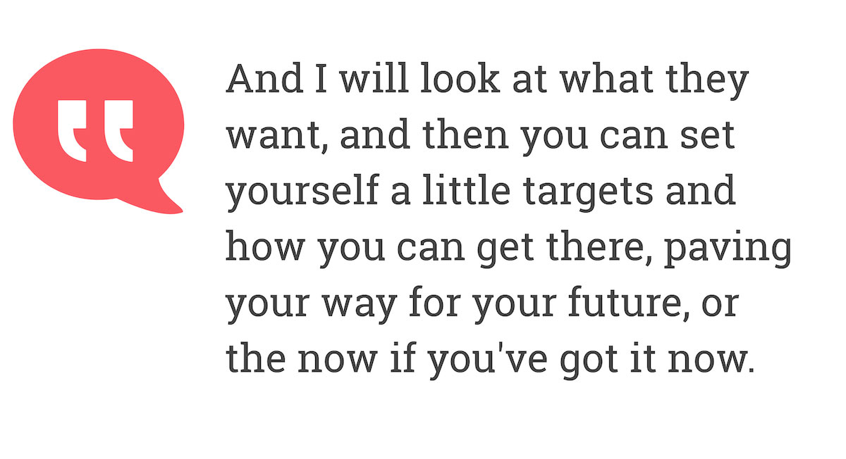 And I will look at what they want, and then you can set yourself a little targets and how you can get there, paving your way for your future, or the now if you've got it now.