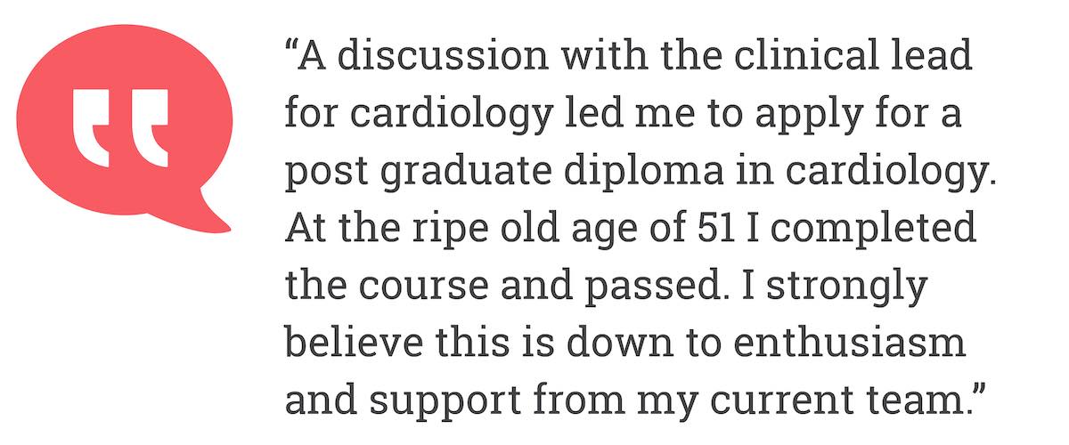 A discussion with the clinical lead for cardiology led me to apply for a post graduate diploma in cardiology.