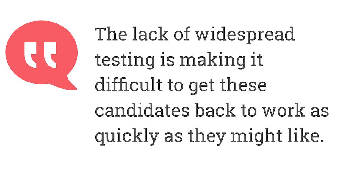 The lack of widespread testing is making it difficult to get these candidates back to work as quickly as they might like.