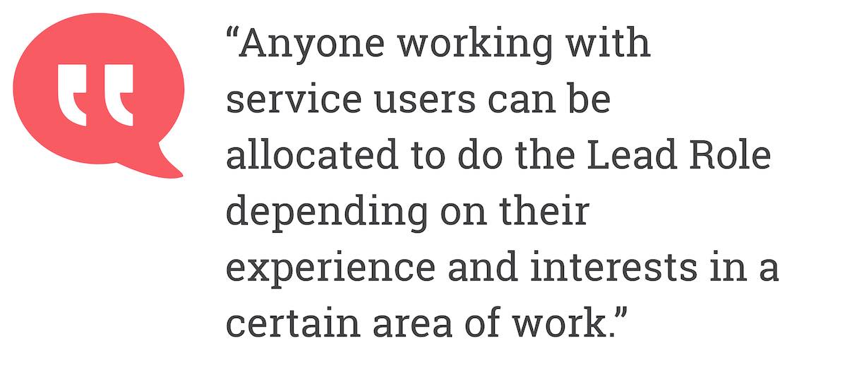 Anyone working with service users can be allocated to do the Lead Role depending on their experience and interests in a certain area of work.