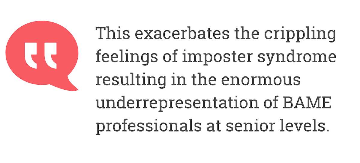 This exacerbates the crippling feelings of imposter syndrome resulting in the enormous underrepresentation of BAME professionals at senior levels.