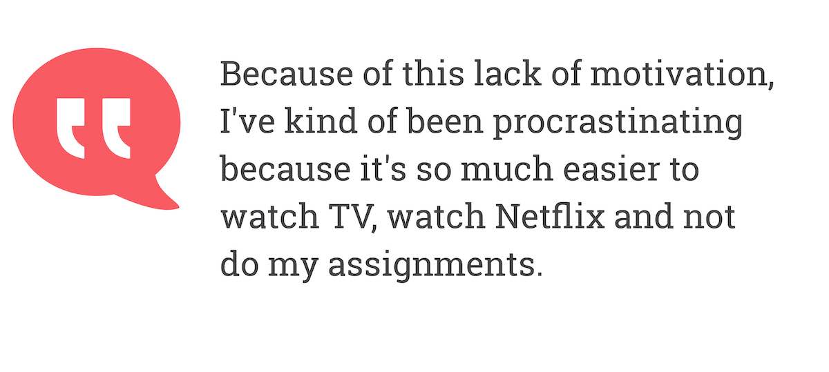 Because of this lack of motivation, I've kind of been procrastinating because it's so much easier to watch TV, watch Netflix and not do my assignments.
