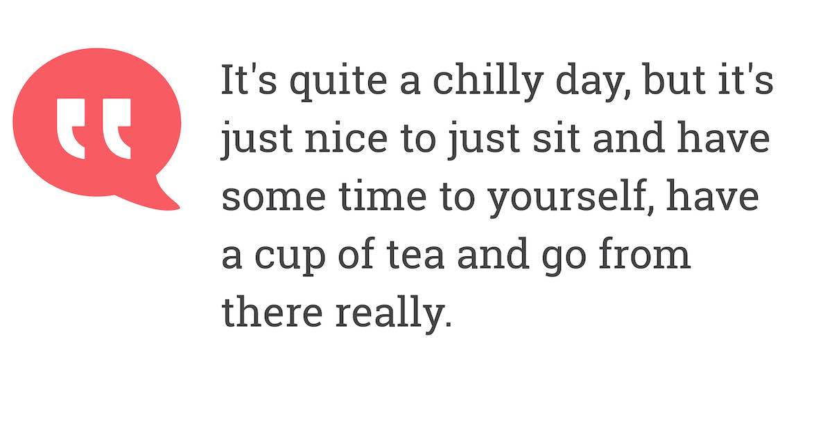 It's quite a chilly day, but it's just nice to just sit and have some time to yourself, have a cup of tea and go from there really.