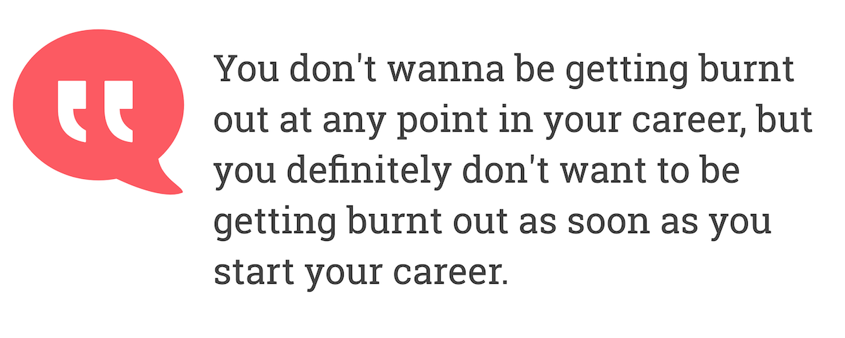 You don't want to be getting burnt out - I mean, you don't wanna be getting burnt out where any point in your career, but you definitely don't want to be getting burnt out as soon as you start your career.