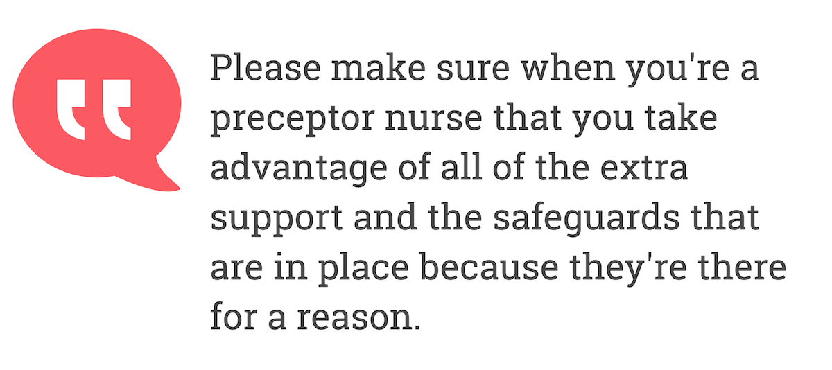 So just please make sure when you're a preceptor nurse that you take advantage of all of the extra support and the safeguards that are in place because they're there for a reason.