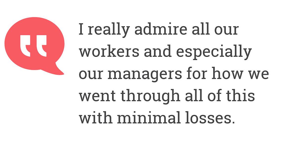 I really admire all our workers and especially our managers for how we went through all of this with minimal losses.