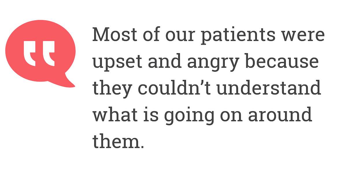 Most of our patients were upset and angry because they couldn’t understand what is going on around them.