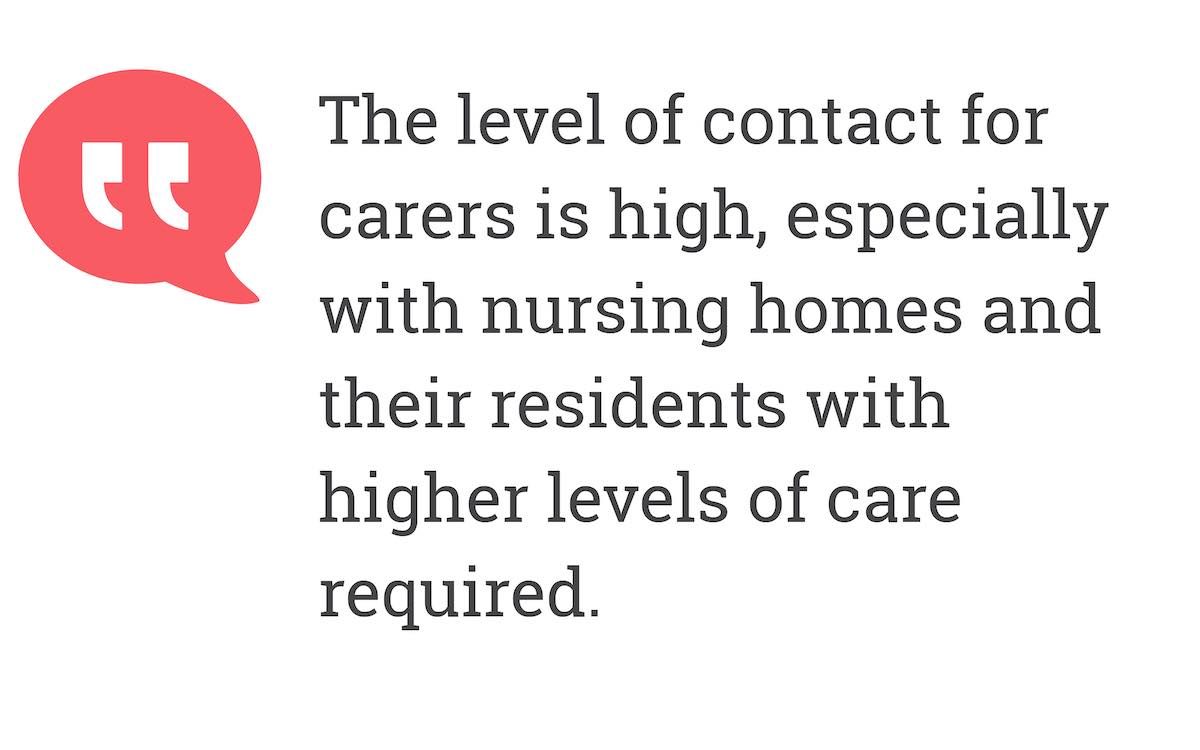 The level of contact for carers is high, especially with nursing homes and their residents with higher levels of care required.