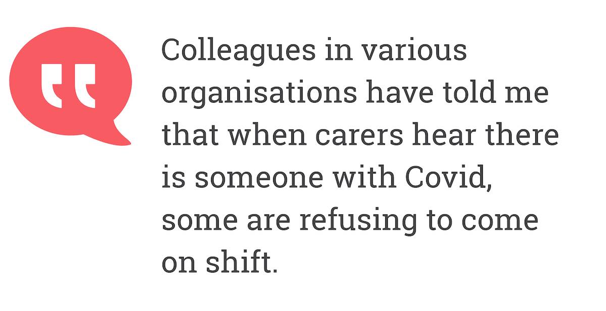 Colleagues in various organisations have told me that when carers hear there is someone with Covid, some are refusing to come on shift.