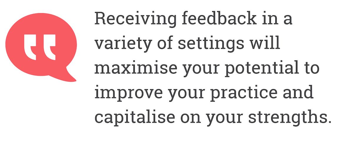 Receiving feedback in a variety of settings will maximise your potential to improve your practice and capitalise on your strengths in different ways.