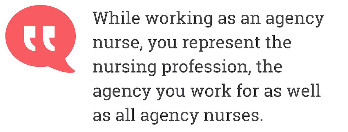 It is quite easy for agency nurses to have an I’m-only-an-agency-nurse mindset. But remember that while working as an agency nurse, not only do you represent the nursing profession, but you also represent the nursing agency you work for as well as all agency nurses.
