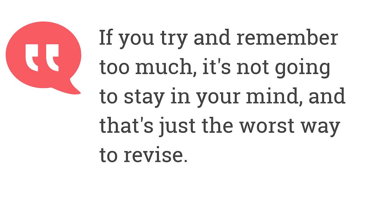 If you try and remember too much, it's not going to stay in your mind, and that's just the worst way to revise.