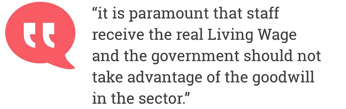 I endorse these sentiments, it is paramount that staff receive the real Living Wage and the government should not take advantage of the goodwill in the sector.