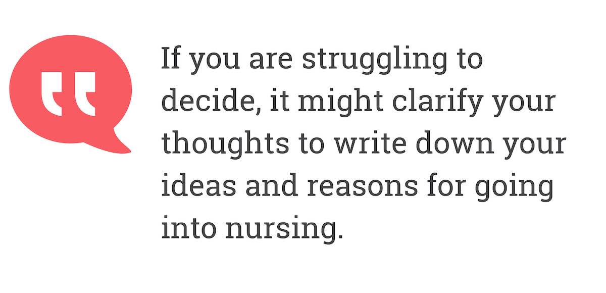 If you are struggling to decide, it might clarify your thoughts to write down your ideas and reasons for going into nursing.