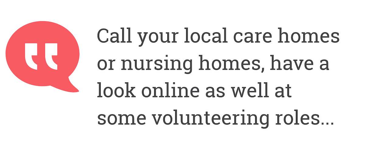 Call your local care homes or nursing homes, have a look online as well at some volunteering roles, ask if you can go in and do a shadow shift and just observe things happening.
