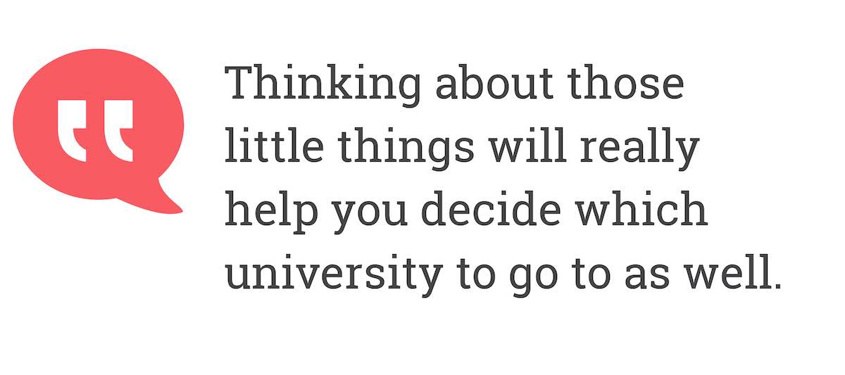 Thinking about those little things will really help you decide which university to go to as well.