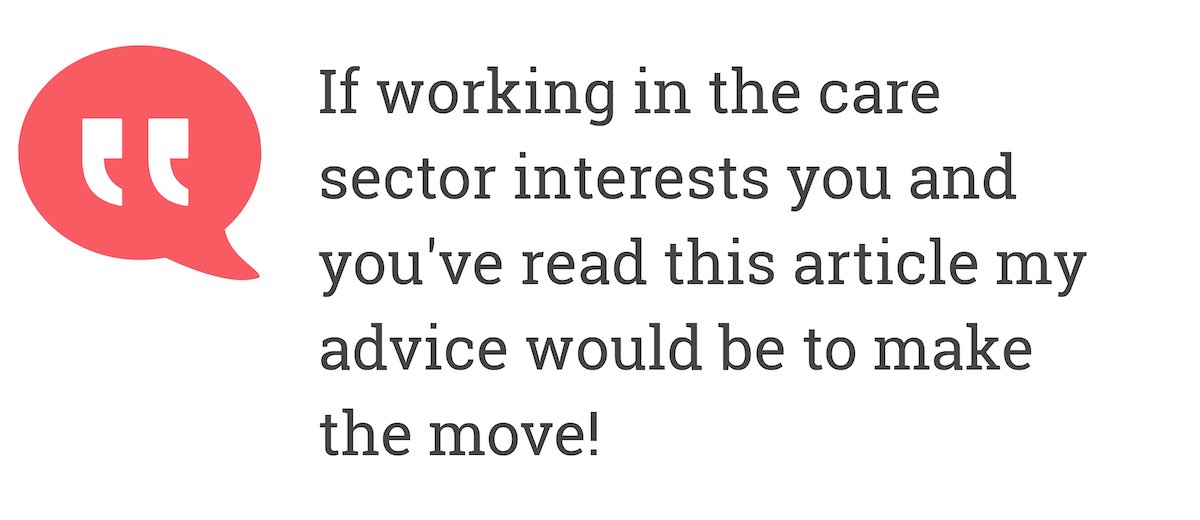 If working in the care sector interests you and you have read this article, knowing you have the skills and abilities required to successfully work in this sector, my advice would be to make the move!