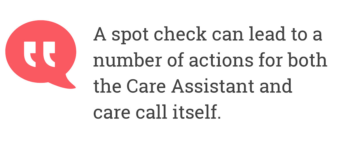 A spot check can lead to a number of actions for both the Care Assistant and care call itself.
