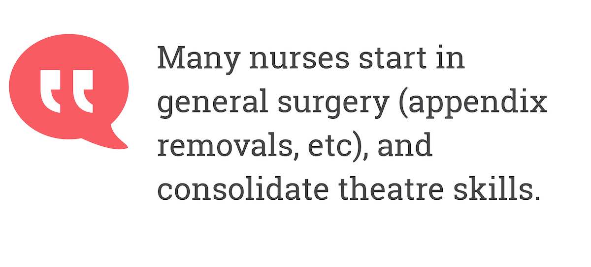 Many nurses start in general surgery (appendix removals, etc), and consolidate theatre skills.