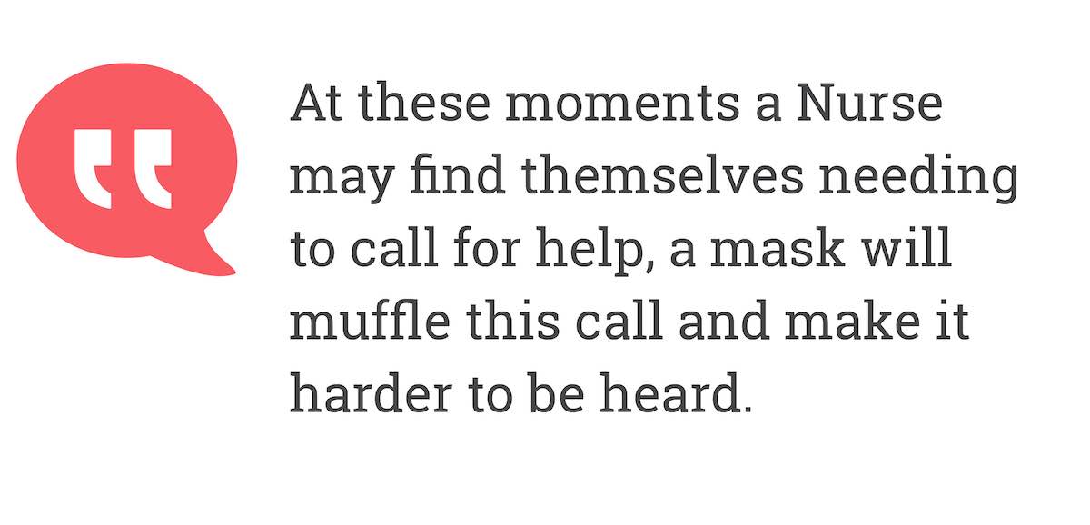 At these moments a Nurse may find themselves needing to call for help, a mask will muffle this call and make it harder to be heard.