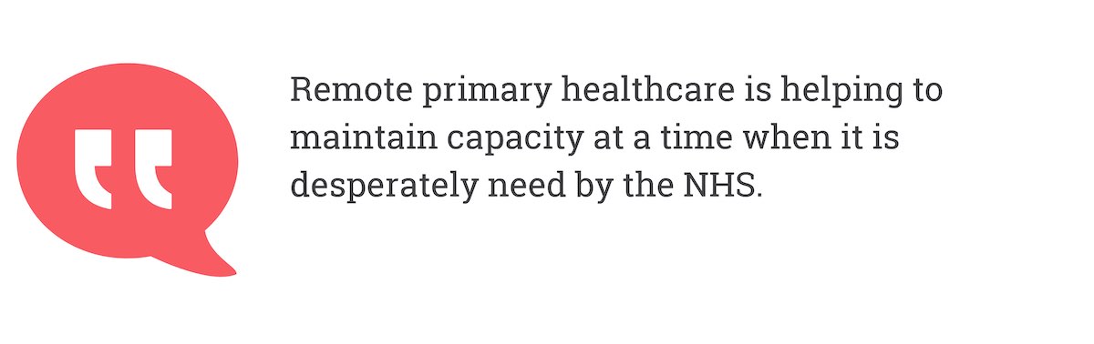 Remote primary Healthcare is helping to maintain capacity at a time when it is desperately need by the NHS.
