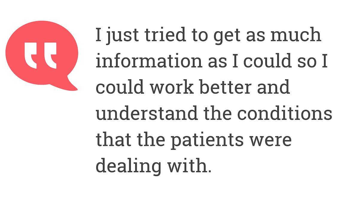 I just tried to get as much information as I could so I could work better and understand the conditions that the patients were dealing with.