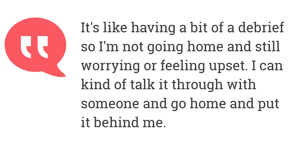 So it's like having a bit of a debrief so I'm not going home and still worrying or feeling upset.