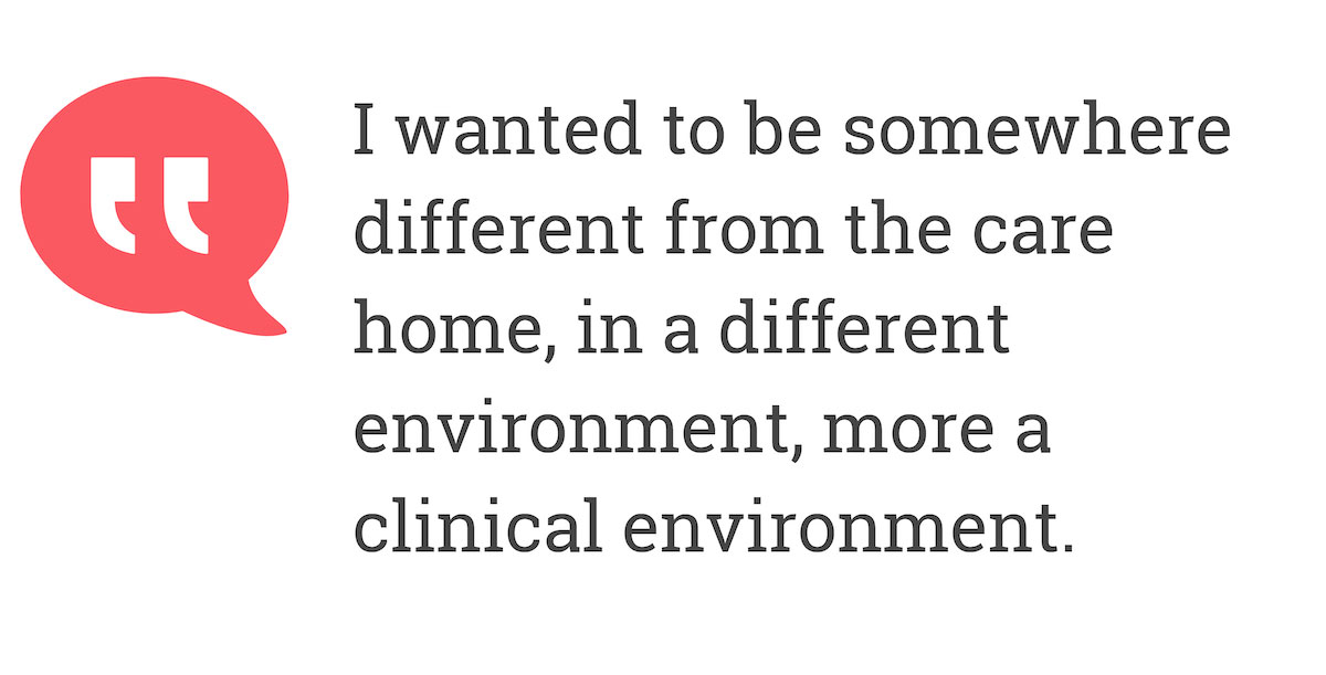 I wanted to be somewhere different from the care home, in a different environment, more a clinical environment.