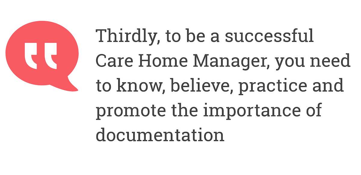 Thirdly, to be a successful Care Home Manager, you need to know, believe, practice and promote the importance of documentation.