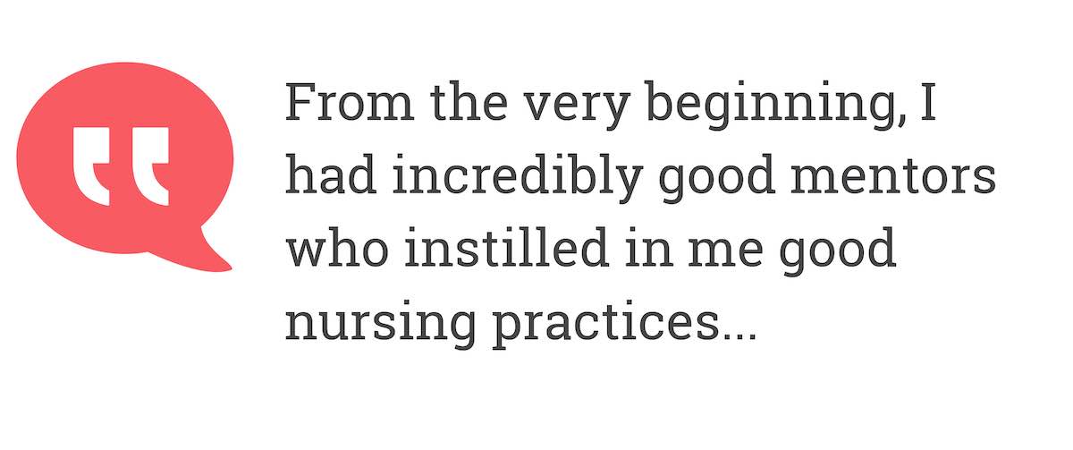 From the very beginning, I had incredibly good mentors who instilled in me good nursing practices, emphasising on areas such as the meaning of giving high quality personalised care, health and safety, infection control, nutrition, documentation etc.