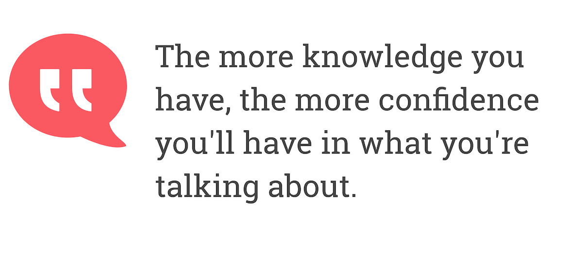 The more knowledge you have, the more confidence you'll have in what you're talking about.