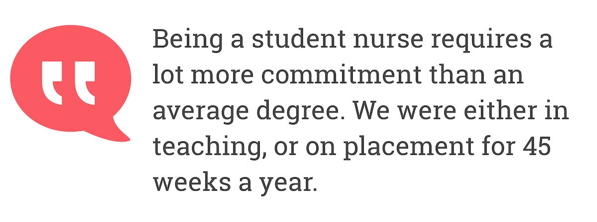 Being a student nurse requires a lot more commitment than an average degree. We were either in teaching, or on placement for 45 weeks a year.