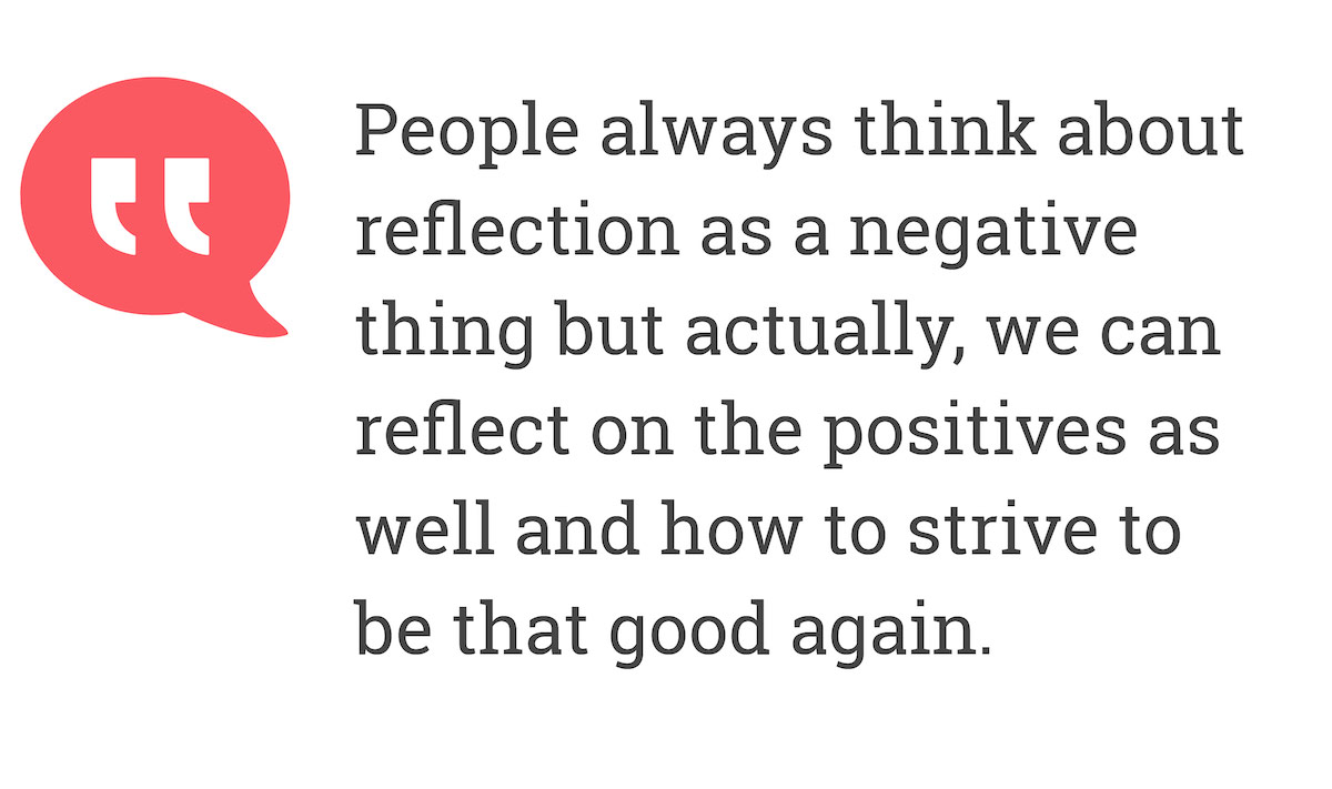 People always think about reflection as a negative thing but actually, we can reflect on the positives as well and how to strive to be that good again.