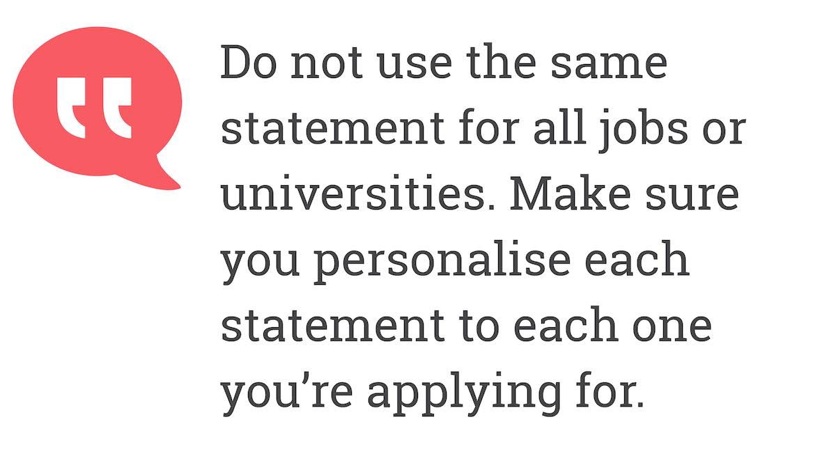 Along with this, add to your statement what you particularly like about the trust or university you’re applying to; find key parts on their website, further reading they have added or job specification to do this.