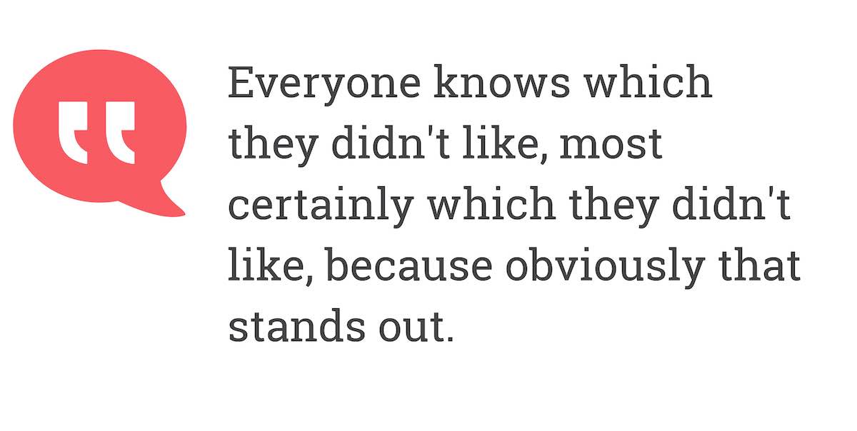 Everyone knows which they didn't like, most certainly which they didn't like, because obviously that stands out.