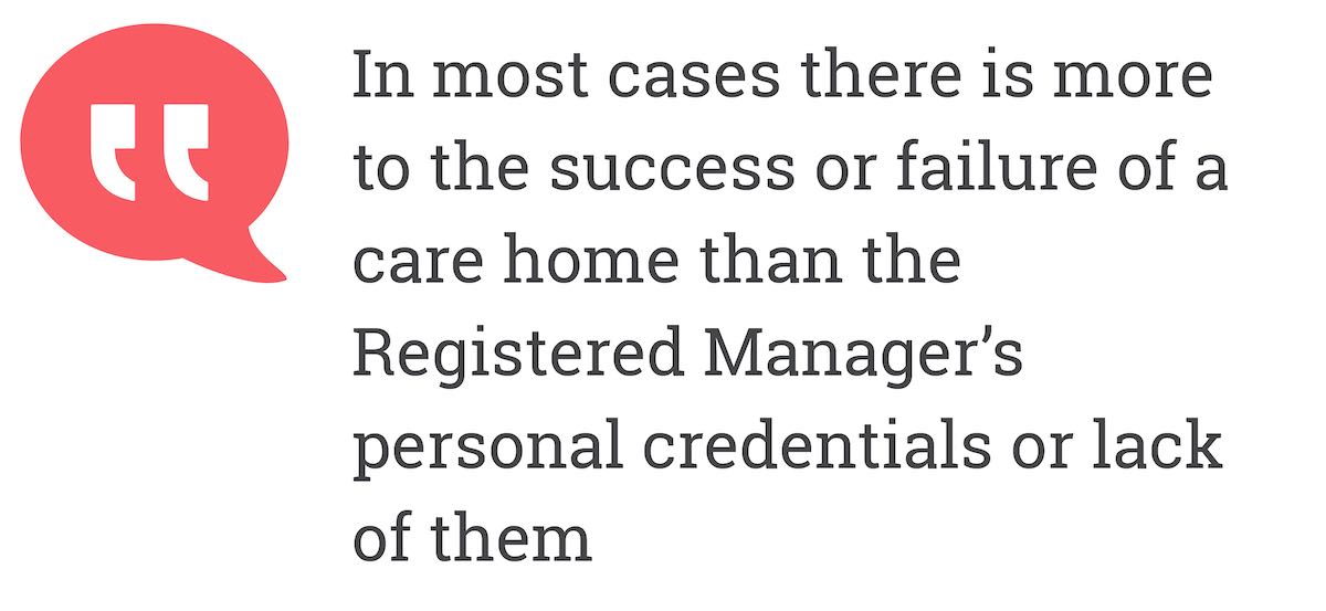 I’m saying in most cases there is more to it than the Registered Manager’s personal credentials or lack of them.