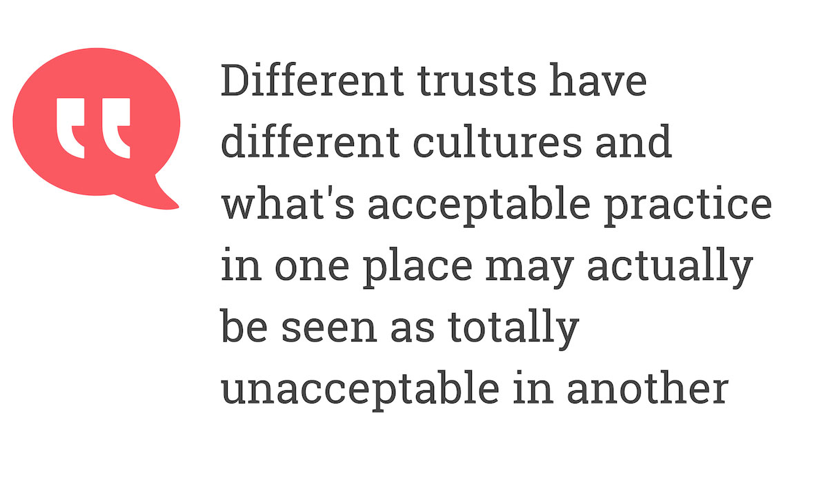 Different trusts have different cultures and what's acceptable practice in one place may actually be seen as totally unacceptable in another, so you need to be a quick learner.