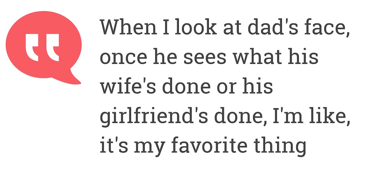 But when I look at dad's face, once he sees what his wife's done or his girlfriend's done, I'm like, it's my favorite thing.