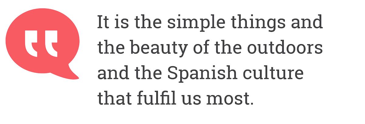 It is the simple things and the beauty of the outdoors and the Spanish culture that fulfil us most, especially when we get to spend so much time together as a family.