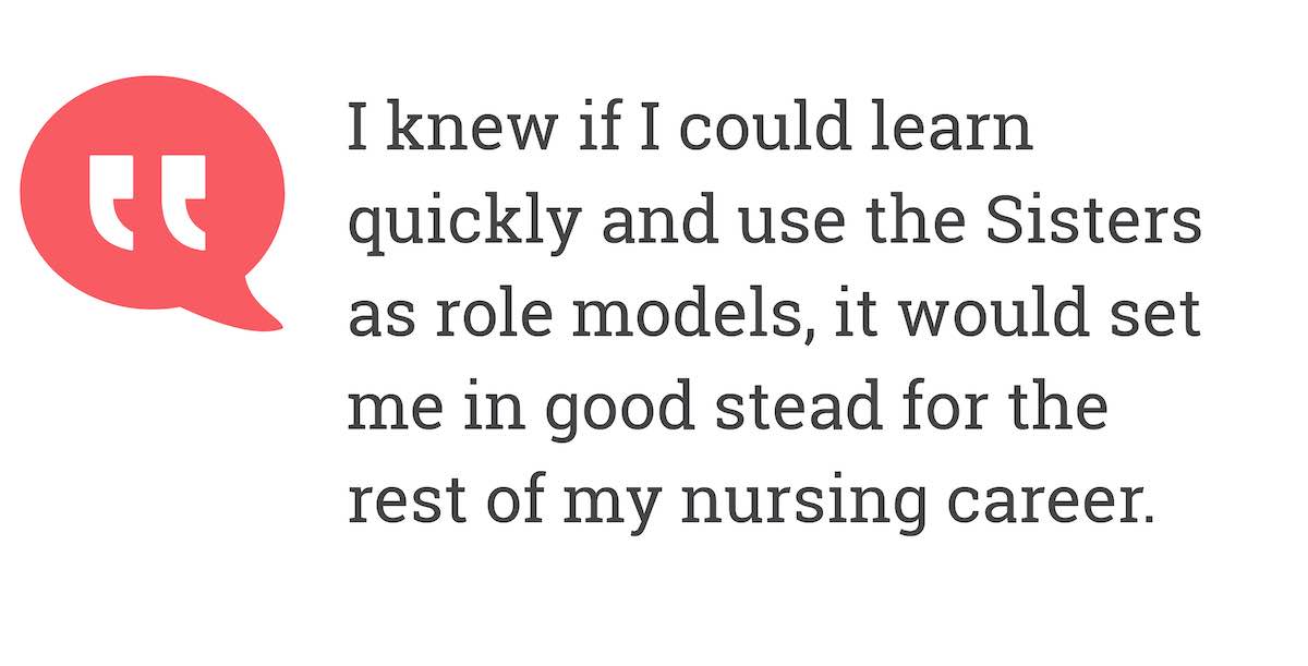 I knew if I could learn quickly and use the Sisters as role models, it would set me in good stead for the rest of my nursing career.