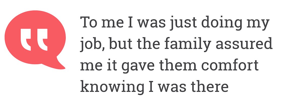 To me I was just doing my job, but the family assured me it gave them comfort knowing I was there.