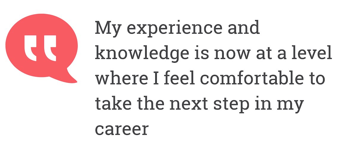 The benefit of these pressures and being thrown in at the deep-end is that my experience and knowledge is now at a level where I feel comfortable to take the next step in my career.
