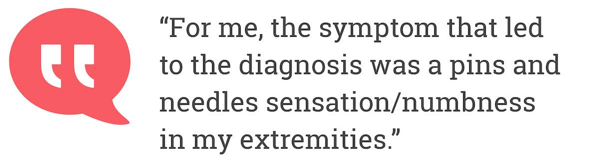 For me, the symptom that led to the diagnosis was a pins and needles sensation/numbness in my extremities.