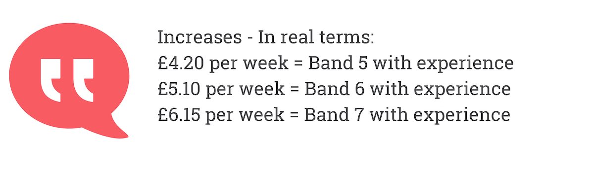 To give a sense of what a 1% rise looks like here's how much Nurses in a few different bandings would see their pay increase by each week: