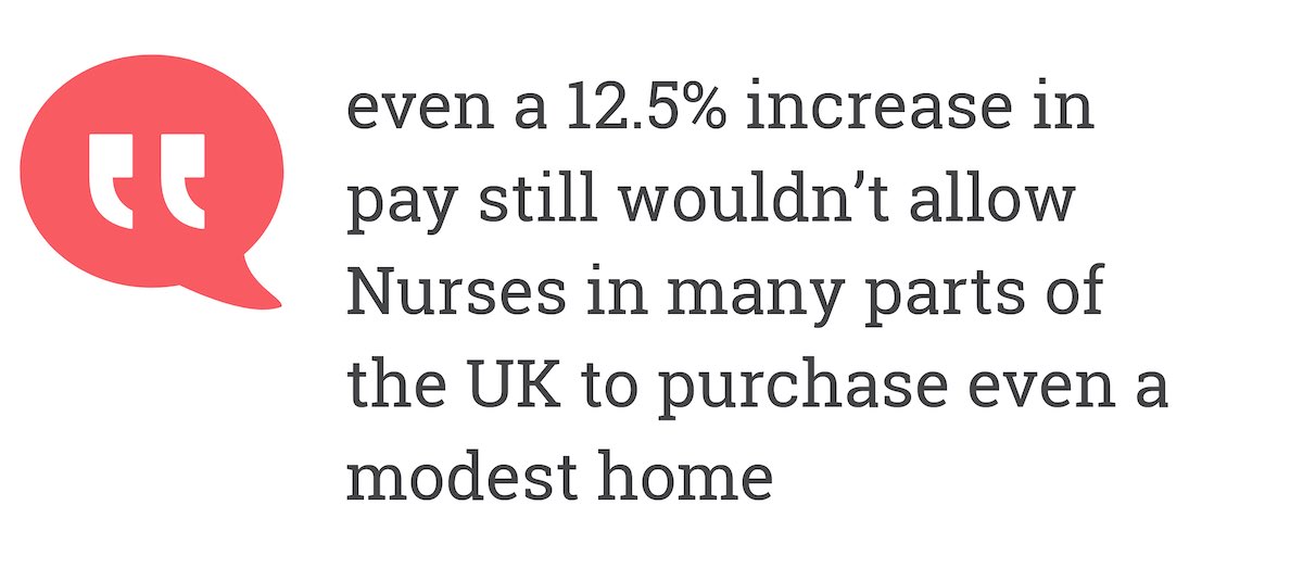 What’s clear from this report is that even a 12.5% increase in pay still wouldn’t allow nurses in many parts of the UK to purchase even a modest home.