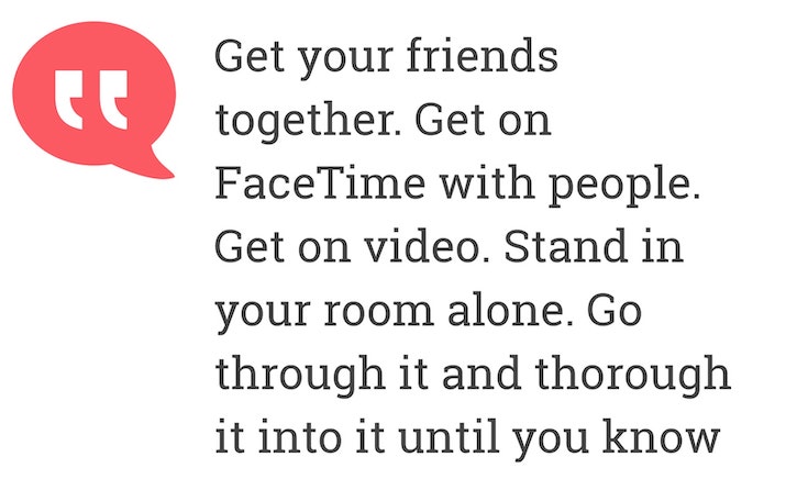 So get your friends together. Get on FaceTime with people. Get on video. Stand in your room alone.