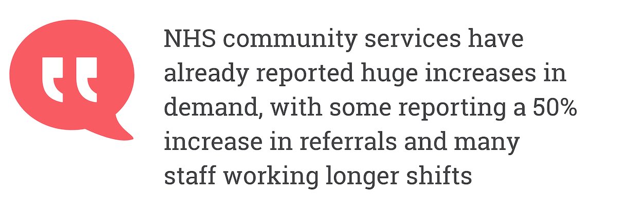 NHS community services have already reported huge increases in demand, with some reporting a 50% increase in referrals and many staff working longer shifts.