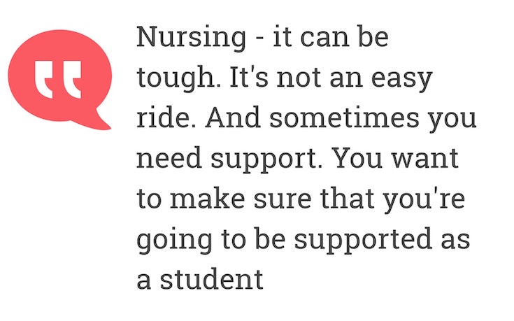 Because Nursing - it can be tough. It's not an easy ride. And sometimes you do need help, you do need support, and you want to make sure that you're going to be supported as a student at the University.