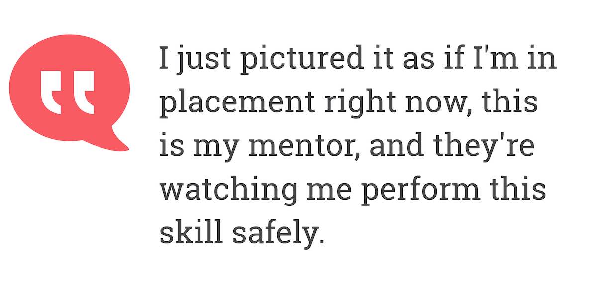 I just pictured it as if I'm in placement right now, this is my mentor, and they're watching me perform this skill safely.